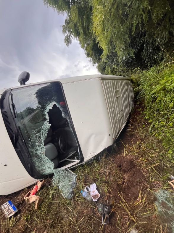 Segundo relato do próprio motorista, no momento do acidente chovia intensamente, havia acúmulo de água na pista e, ao fazer uma curva, o veículo aquaplanou, ocasionando a saída de pista e o acidente.