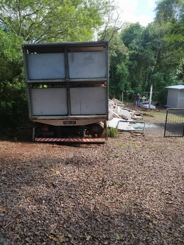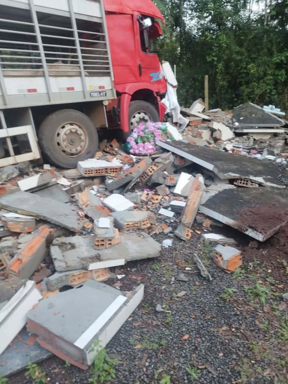 O veículo percorreu cerca de 100 metros por uma estrada não pavimentada, entre árvores, e acabou colidindo contra uma cerca de tela, invadindo um cemitério e atingindo alguns jazigos. O caminhão parou sobre os destroços.