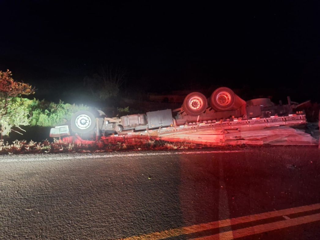 Um grave acidente de trânsito foi registrado na noite de sexta-feira (18), por volta das 22h09, na Linha Santo Antônio do Meio, sentido União do Oeste, no Oeste de Santa Catarina. A ocorrência envolveu o capotamento de um caminhão Ford Cargo que transportava carga de madeira.