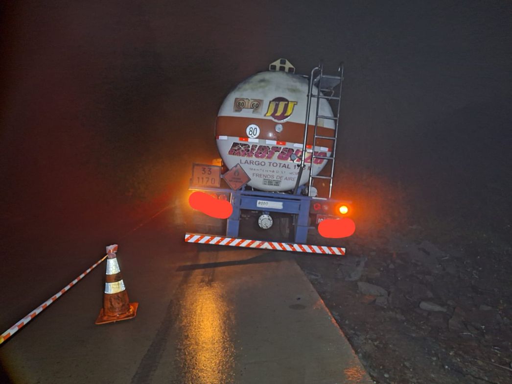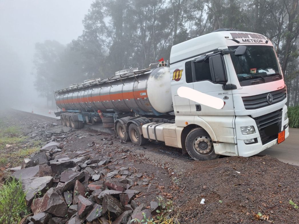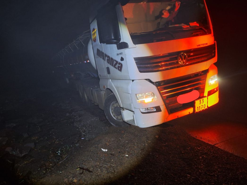 Caminhão sai da pista durante a madrugada na SC-305 em São Lourenço do Oeste