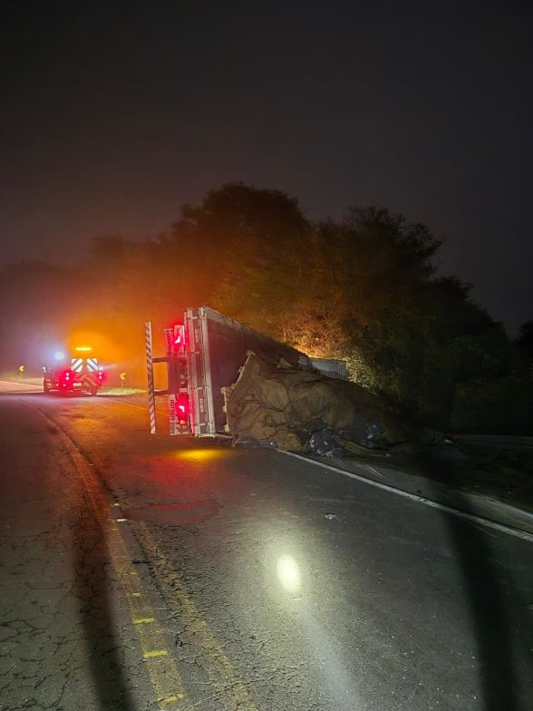 Caminhão tomba na BR-153 em Irani e motorista fica ferido