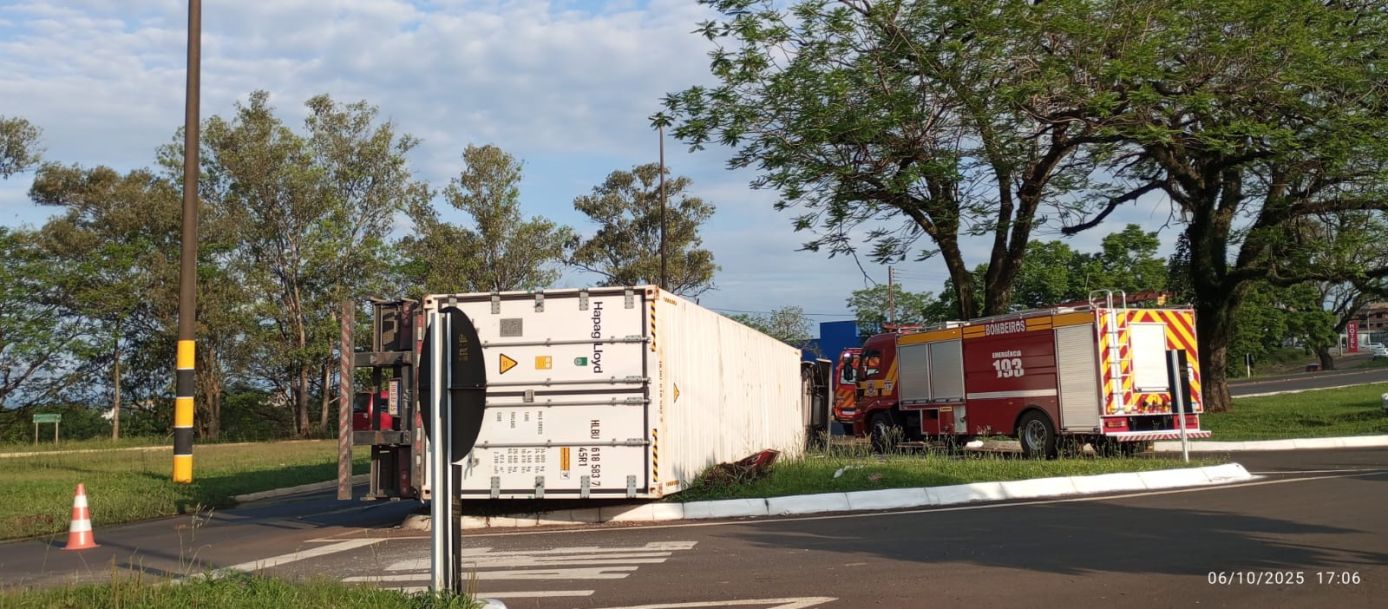 Carreta carregada com carne suína tomba na BR-282 em Pinhalzinho