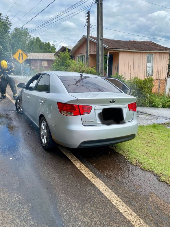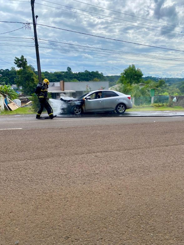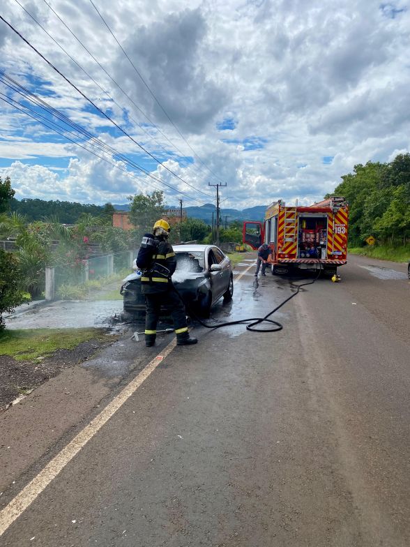 Carro é destruído por incêndio às margens da SC-155, em Itá