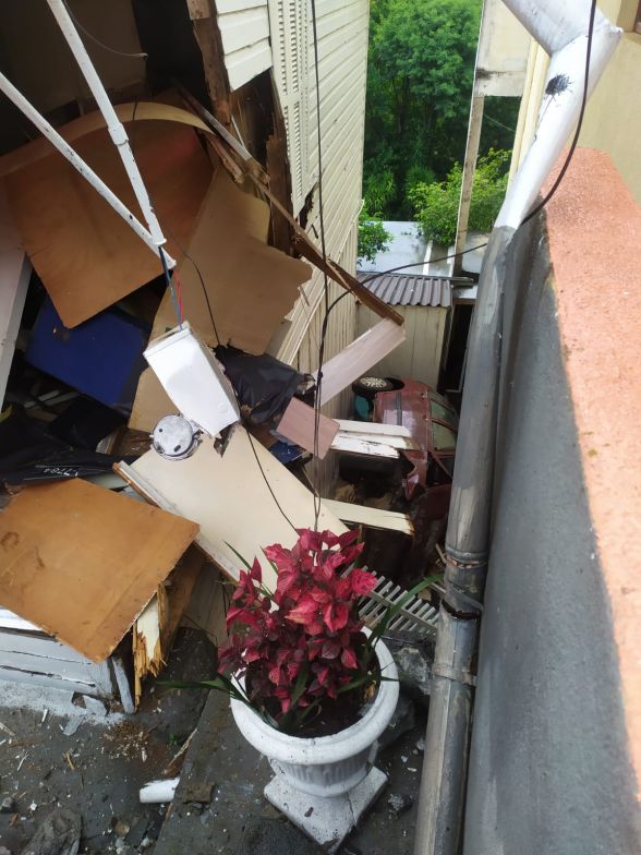 Dentro da casa, estavam dois moradores que dormiam no quarto logo abaixo da área atingida, mas nenhum deles se feriu