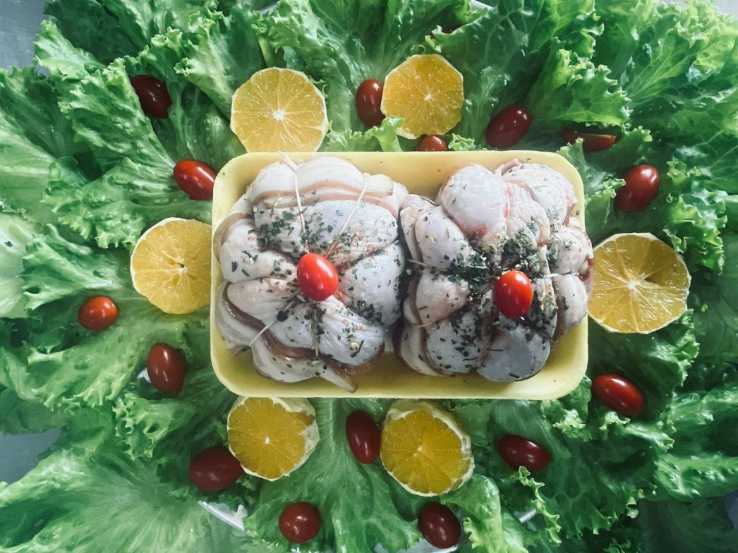 • Coxa recheada com linguicinha, presunto, queijo e bacon