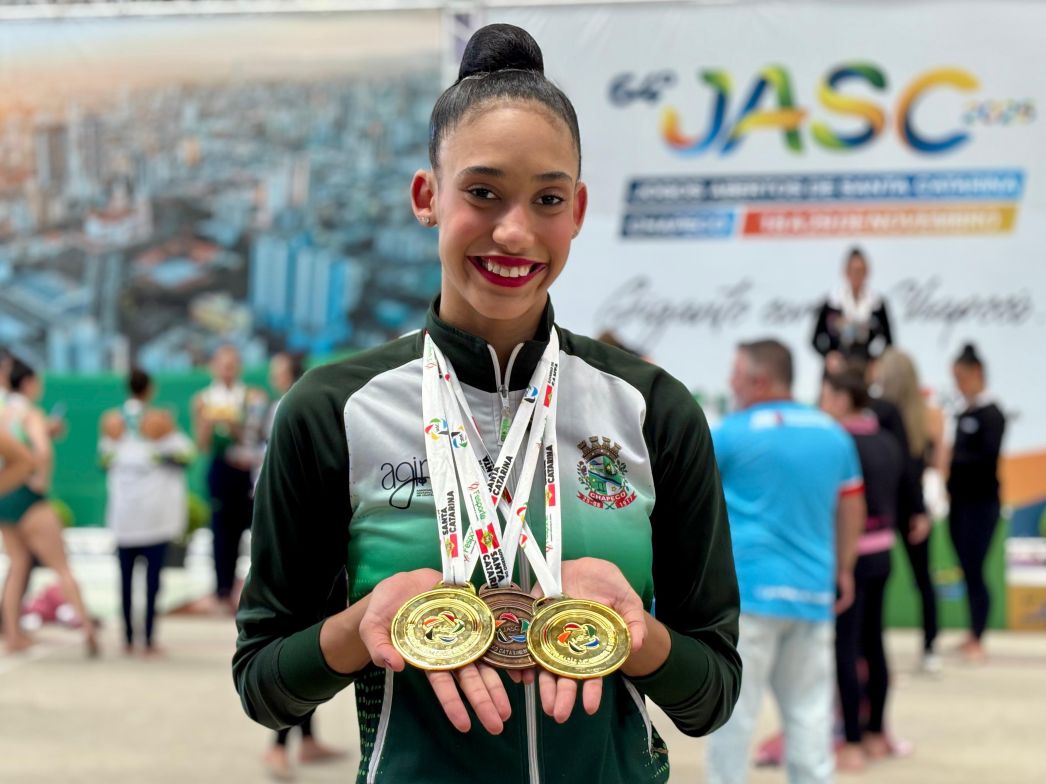 O destaque da equipe da casa foi Julia Castro, que garantiu duas medalhas de Ouro, nos aparelhos fita e bola, e uma medalha de Bronze no individual geral, resultado da soma das apresentações nos quatro aparelhos (bola, maças, fita e arco). Ela é paranaense de Londrina e foi contratada para reforçar a equipe. “Pela primeira vez disputei os JASC, fui muito bem recebida aqui e a competição foi muito importante, difícil, mas os resultados vieram. Foi uma experiência que contribuiu para a minha vida e espero voltar aqui outras vezes”, disse.