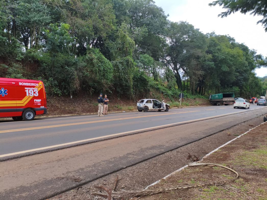 O Corpo de Bombeiros Militar atendeu uma ocorrência de sinistro de trânsito na manhã de quarta-feira (08), por volta das 11h08, na BR-158, no trevo de acesso ao bairro Bartz, em Cunha Porã.