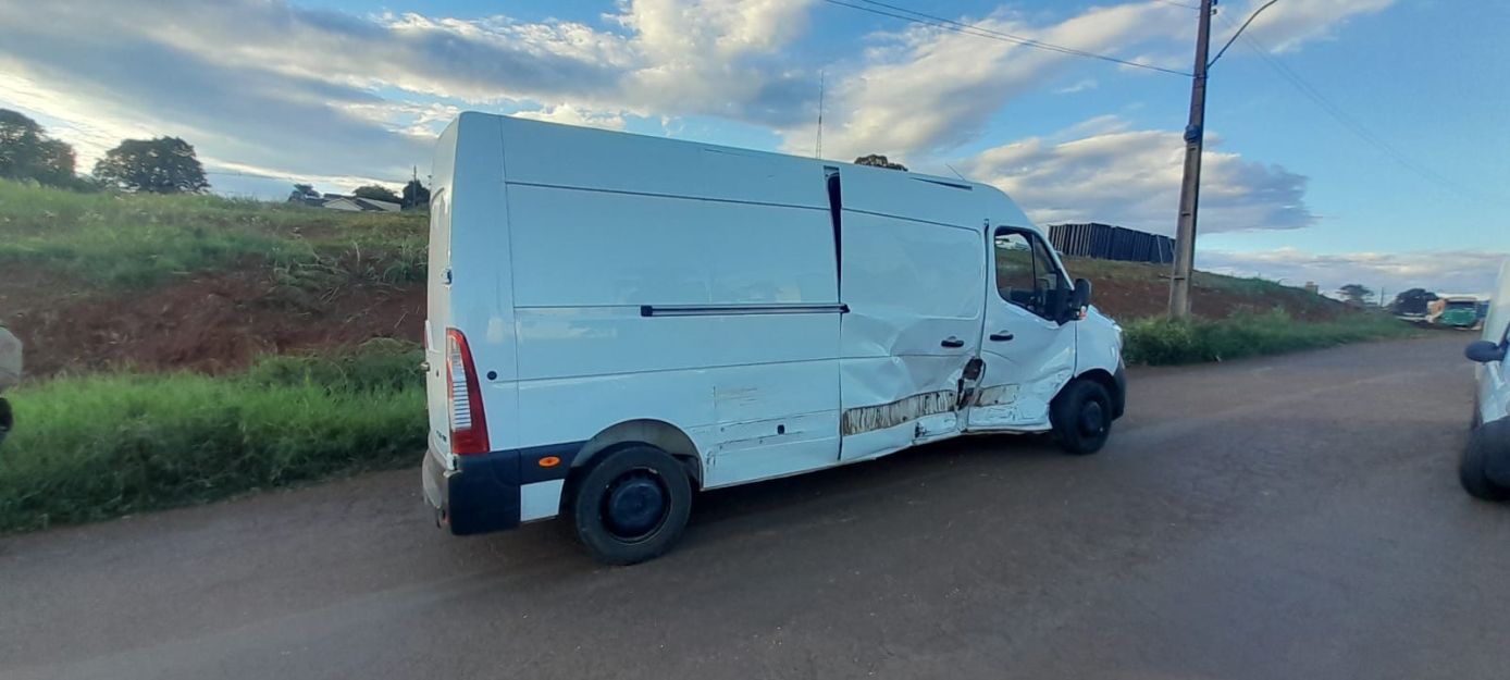 No local, foi constatada uma colisão entre um veículo Onix e uma van, ambos com ocupantes feridos.