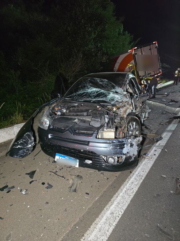 Ao chegar no local, as guarnições confirmaram uma colisão frontal entre um carro e um caminhão. Duas vítimas, ocupantes do veículo de passeio, já estavam fora do automóvel e necessitavam de atendimento pré-hospitalar.