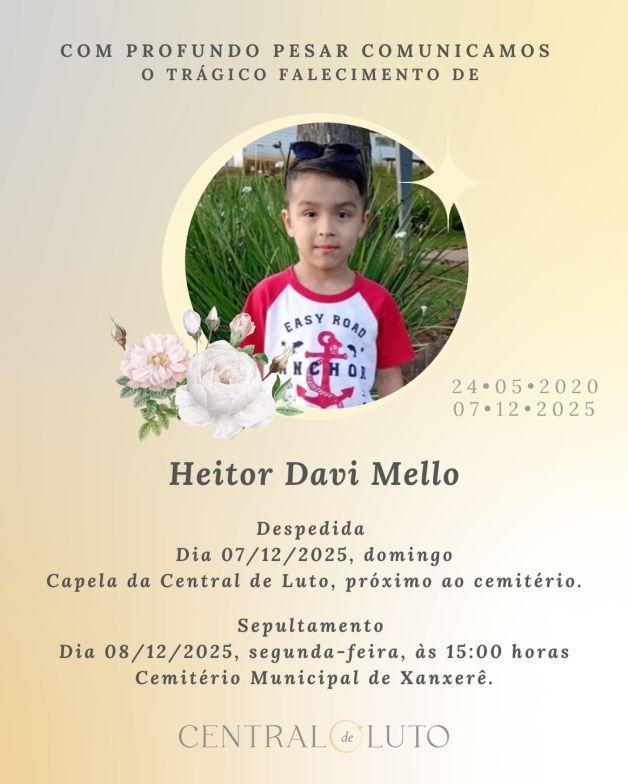 A Prefeitura de Xanxerê emitiu uma nota de pesar pelo falecimento do menino, identificado como Heitor Davi Mello, que estudava na escola Pequeno Príncipe. Diante do ocorrido, as aulas foram suspensas nessa segunda-feira (08).