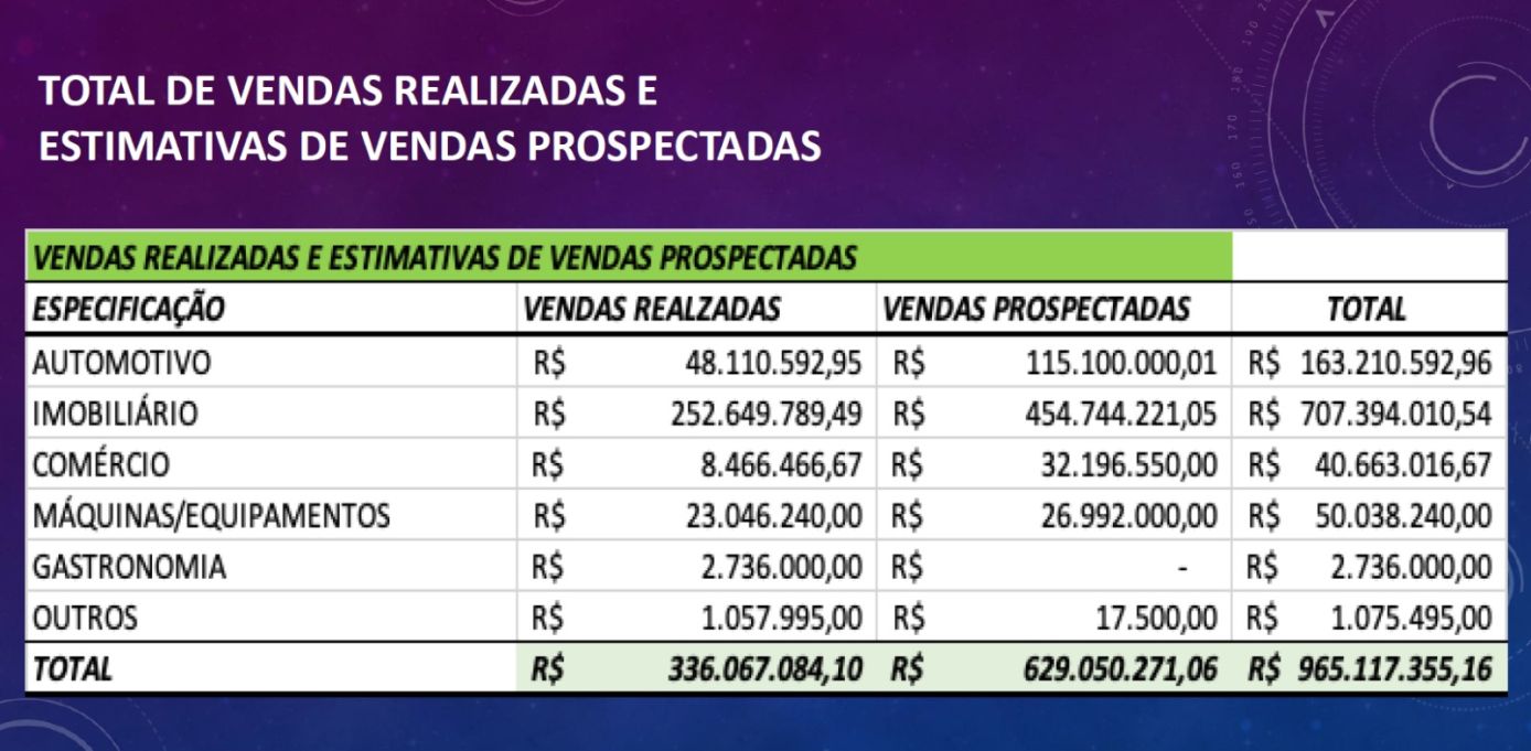 O coordenador geral da feira e secretário de Desenvolvimento Econômico, Turismo e Inovação do Município, Márcio da Paixão Rodrigues, apresentou os números levantados em pesquisa com os expositores. Foram R$ 336 milhões em negócios realizados, R$ 629 milhões em negócios prospectados, totalizando R$ 965 milhões. Destaque para o setor imobiliário, que vendeu R$ 252,6 milhões durante a feira e prospectou mais R$ 454,7 milhões em negócios.