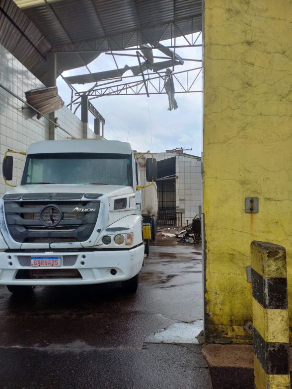 Empresa de Ipuaçu registra destelhamento após forte pancada de chuva acompanhada de rajadas de vento