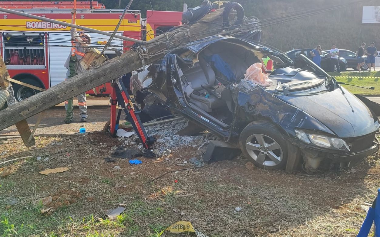 Grave colisão de carro contra poste deixa motorista ferido em Chapecó