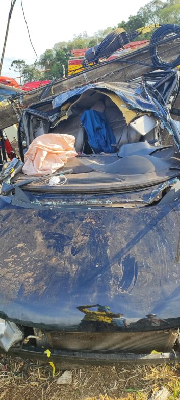 O condutor era o único ocupante do veículo e foi encontrado consciente e orientado, mas preso às ferragens
