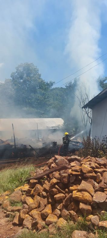 Um incêndio em edificação rural mobilizou equipes do 12º Batalhão de Bombeiros Militar na manhã de quarta-feira (11), na Linha Biguazinho, interior de Iraceminha.