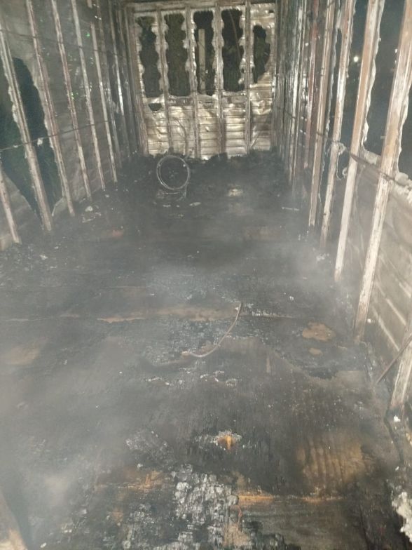 Incêndio destrói baú de caminhão usado por andarilhos em São Lourenço do Oeste