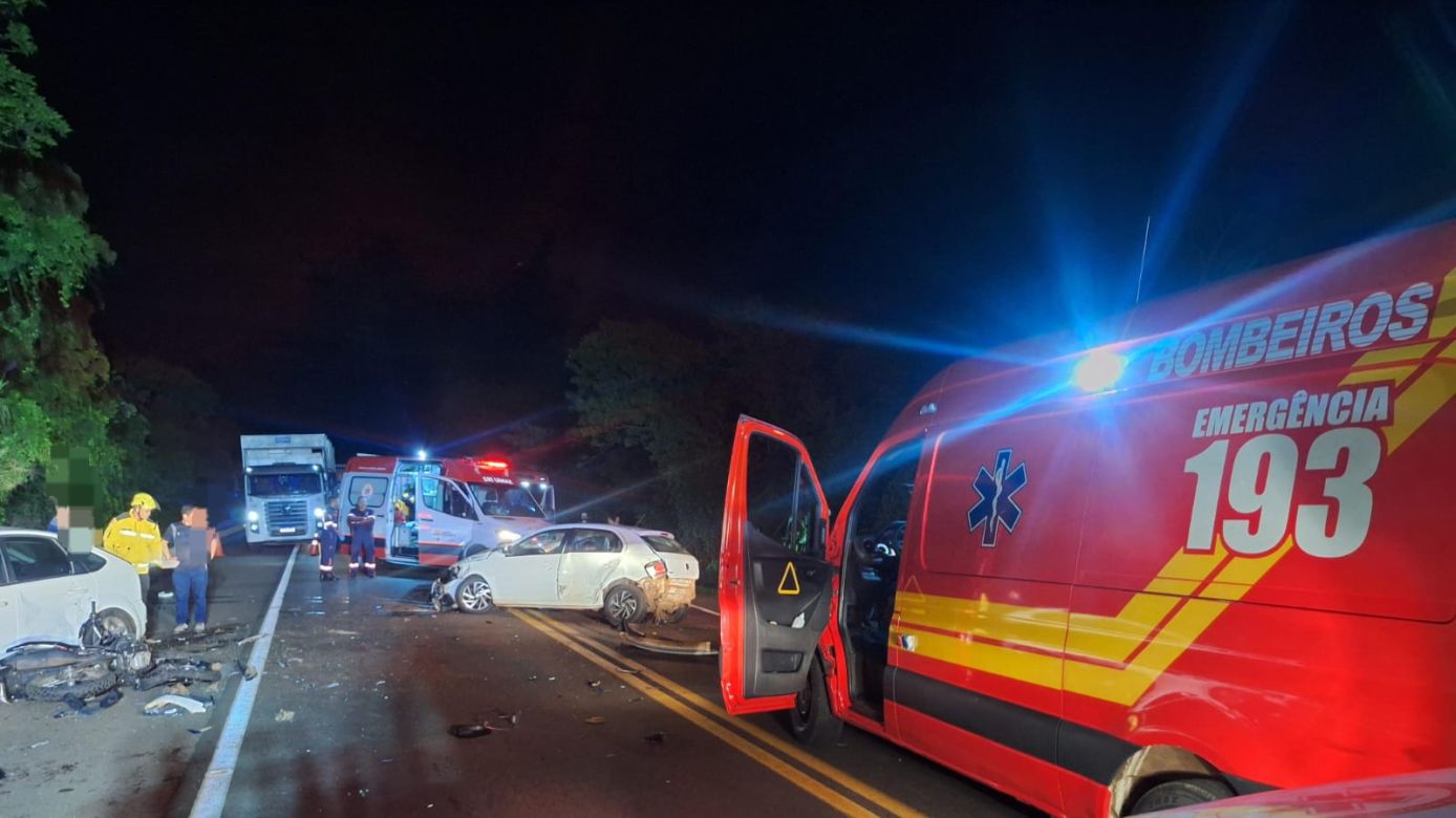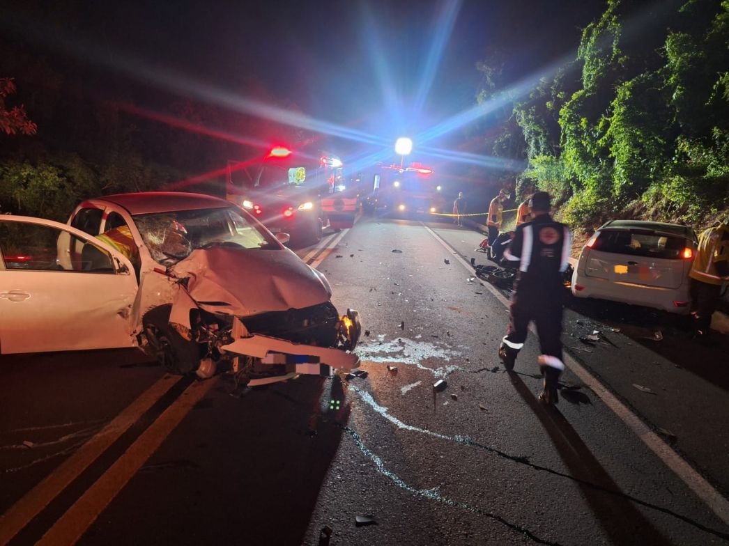 De acordo com o Corpo de Bombeiros, o chamado foi atendido às 20h55, envolvendo uma colisão entre três veículos, sendo um Ford Focus, um VW Gol e uma motocicleta.