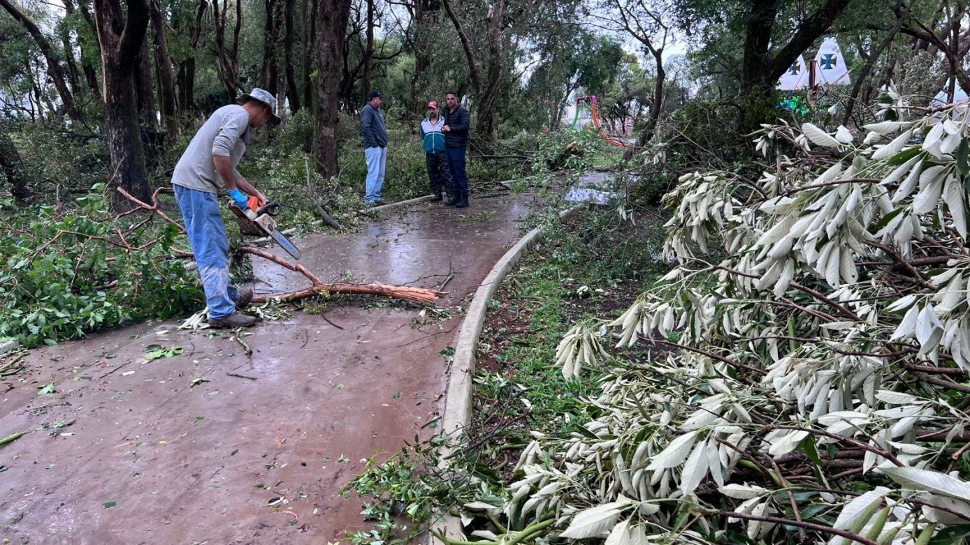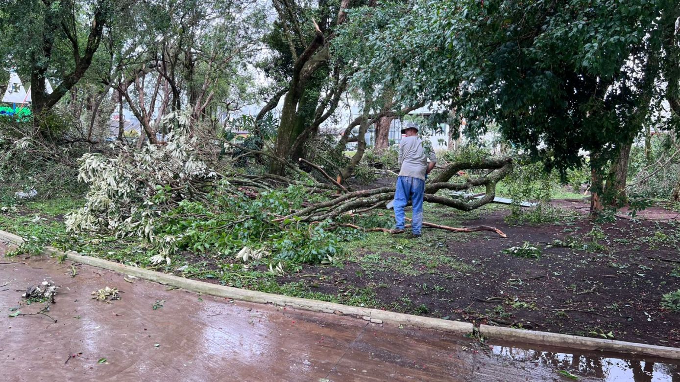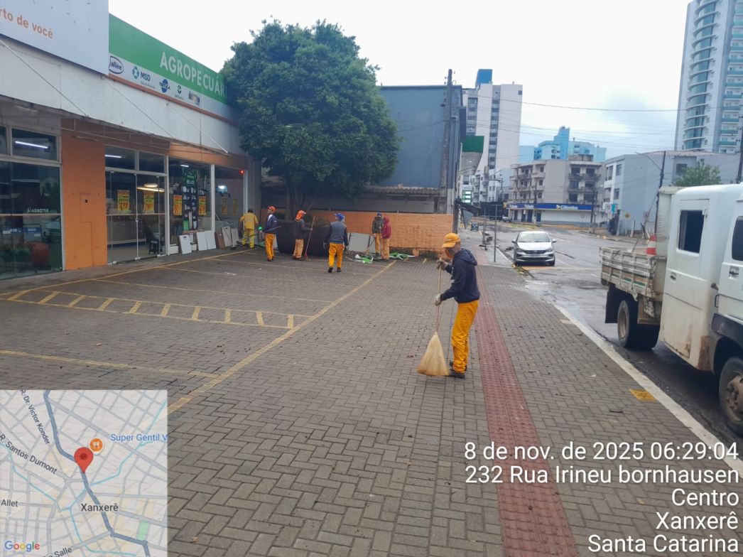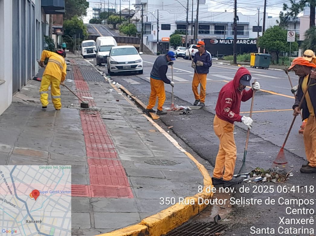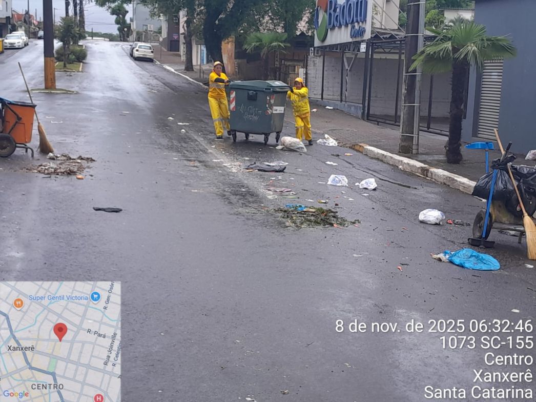 Desde a tarde de sexta-feira, equipes da Prefeitura, Defesa Civil e Ambiental atuam na limpeza e desobstrução de vias, além da recuperação de áreas públicas, como o Ecoparque Municipal. A empresa Ambiental reforçou o trabalho de limpeza com equipes nas ruas desde as primeiras horas da manhã.