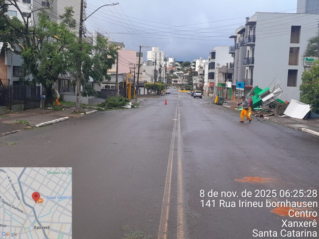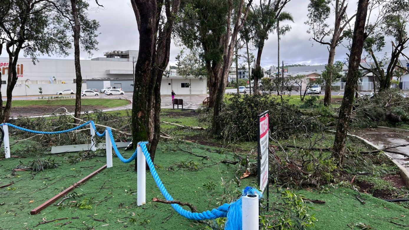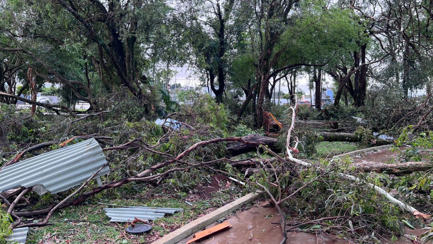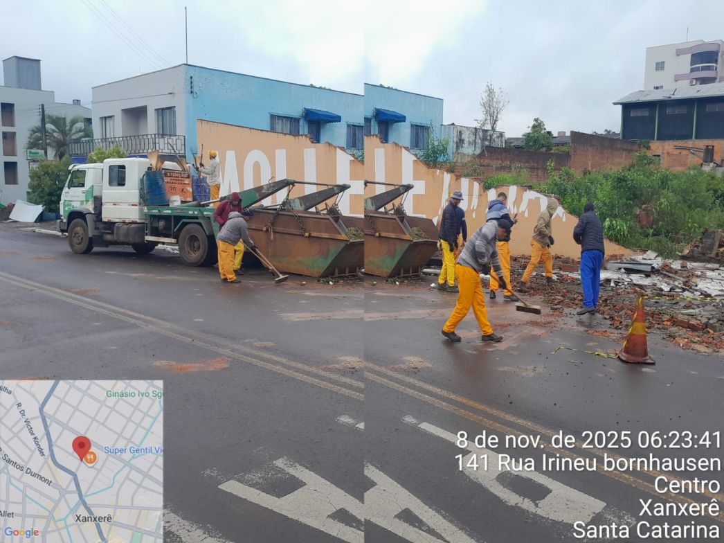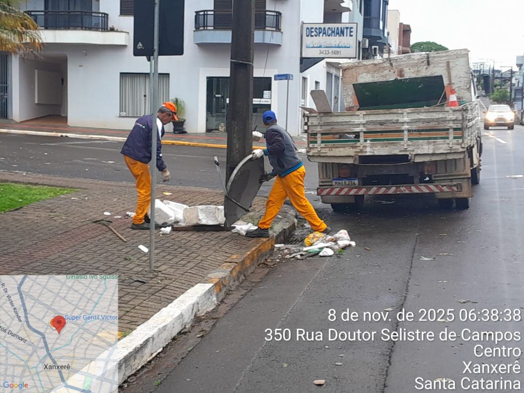 Desde a tarde de sexta-feira, equipes da Prefeitura, Defesa Civil e Ambiental atuam na limpeza e desobstrução de vias, além da recuperação de áreas públicas, como o Ecoparque Municipal. A empresa Ambiental reforçou o trabalho de limpeza com equipes nas ruas desde as primeiras horas da manhã.