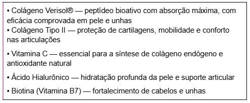 A partir dos 25 anos, o corpo começa a reduzir a produção natural de colágeno. O resultado, com o tempo, aparece na pele menos firme, nas unhas mais fracas, nos cabelos que perdem força e no desconforto crescente nas articulações.