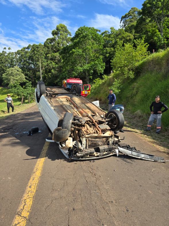 Motorista fica ferido em capotamento no interior de Cordilheira Alta