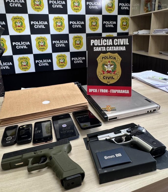 Durante o cumprimento da ordem judicial, foram apreendidos cinco aparelhos celulares, um notebook, diversas pastas contendo contratos e documentos pessoais de possíveis vítimas, além de um broche do Poder Judiciário Federal. Também foram localizadas duas pistolas de airsoft, sendo uma delas com aparência muito semelhante a uma pistola Glock.