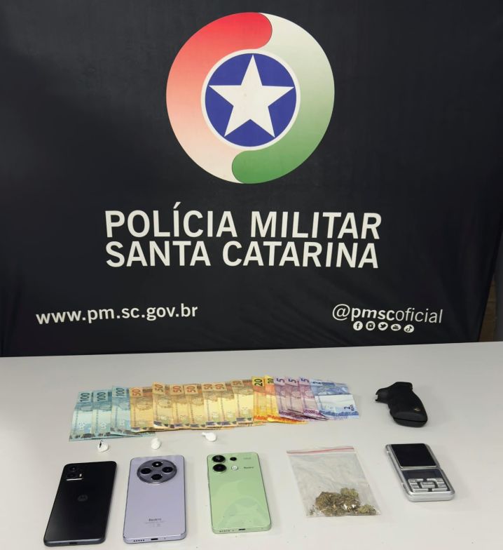 Durante a ação, duas mulheres foram detidas pelo crime de tráfico de drogas, sendo apreendidos R$ 707,00, provenientes da venda de entorpecentes, além de oito gramas de maconha, duas gramas de cocaína, uma balança de precisão, um cabo de revólver e três aparelhos celulares, todos vinculados à atividade de comercialização de drogas.