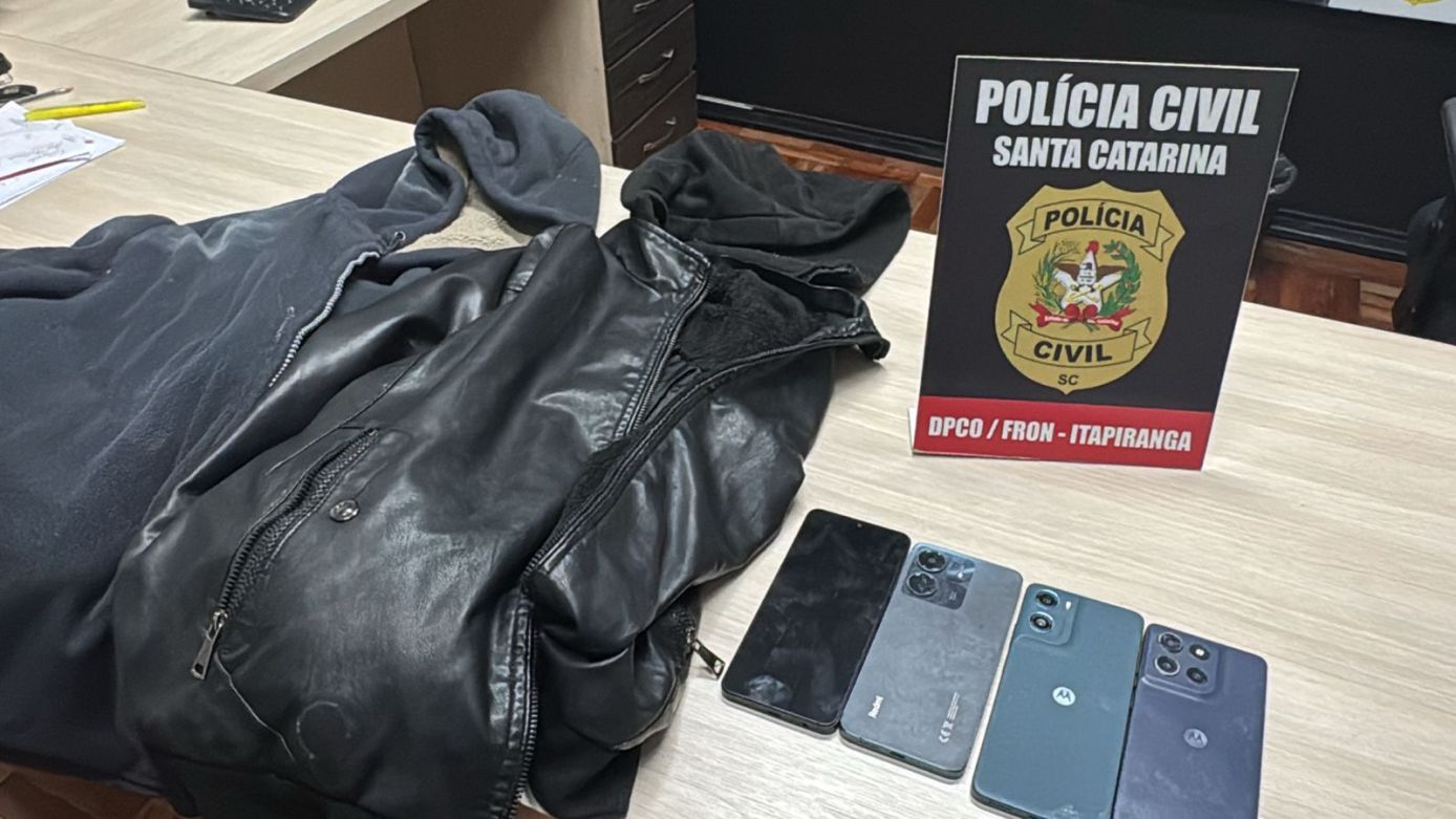 Durante o cumprimento dos mandados, foram apreendidos casacos utilizados na ação criminosa e quatro aparelhos celulares, que passarão por análise pericial.