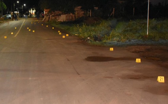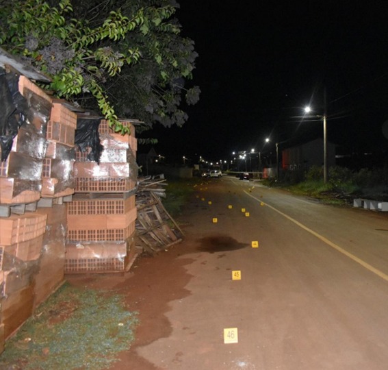 Durante a perícia no local do crime, foram identificados vestígios espalhados por cerca de 80 metros. Os peritos recolheram nove estojos e um projétil calibre 9x19mm, todos de arma de uso restrito. Os disparos, segundo a perícia, foram efetuados do lado direito da via, atingindo a lataria e o painel do veículo da vítima, além do muro de uma residência e de outro carro estacionado nas proximidades, que teve danos no farol e no vidro. As manchas de sangue apontaram que dois indivíduos teriam se deslocado a pé após o crime.