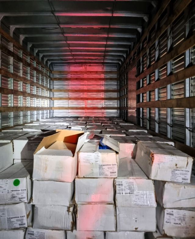 A apreensão aconteceu após policiais desconfiarem dos ocupantes de um automóvel que seguia pela rodovia, dois homens, de 57 e 42 anos. No veículo, foram encontrados cinco celulares que continham mensagens trocadas com o motorista do caminhão que levava o produto ilegal.