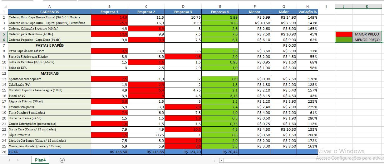 Ele destaca que, por exemplo no item borracha branca, foi observada uma variação de até 280%. Segundo ele, todos os itens em um mesmo local custam R$ 70,44 (menor preço); em outro estabelecimento custa R$ 136,50 (maior preço). Na média geral para comprar os itens em Chapecó o custo médio ficou em R$ 111,25.
