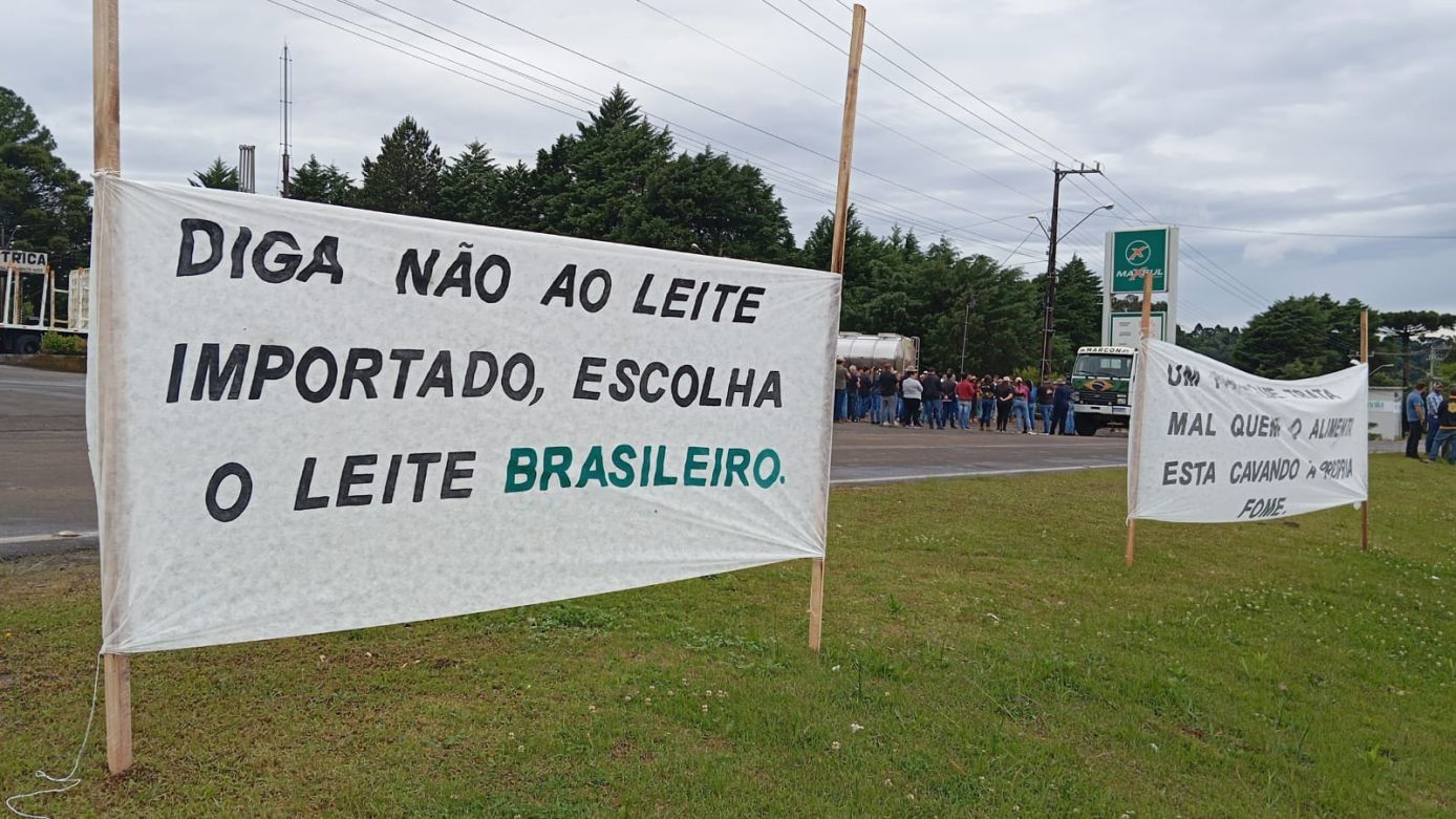 Durante o ato, os participantes exibiram faixas com frases de protesto e discursaram sobre as dificuldades enfrentadas na atividade, que incluem concorrência desleal com produtos importados, altos custos de produção e preços baixos pagos pelo litro do leite.