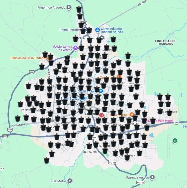 Ao todo, foram instaladas 189 ovitrampas, distribuídas de forma estratégica em diferentes pontos do município. As armadilhas são compostas por um pote com água e uma palheta de madeira, que funcionam como “espiãs” do mosquito, simulando um criadouro e atraindo as fêmeas para depositarem seus ovos.