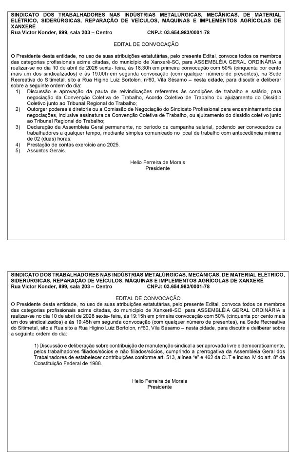 Sitimetal convoca associados para Assembleia em Xanxerê