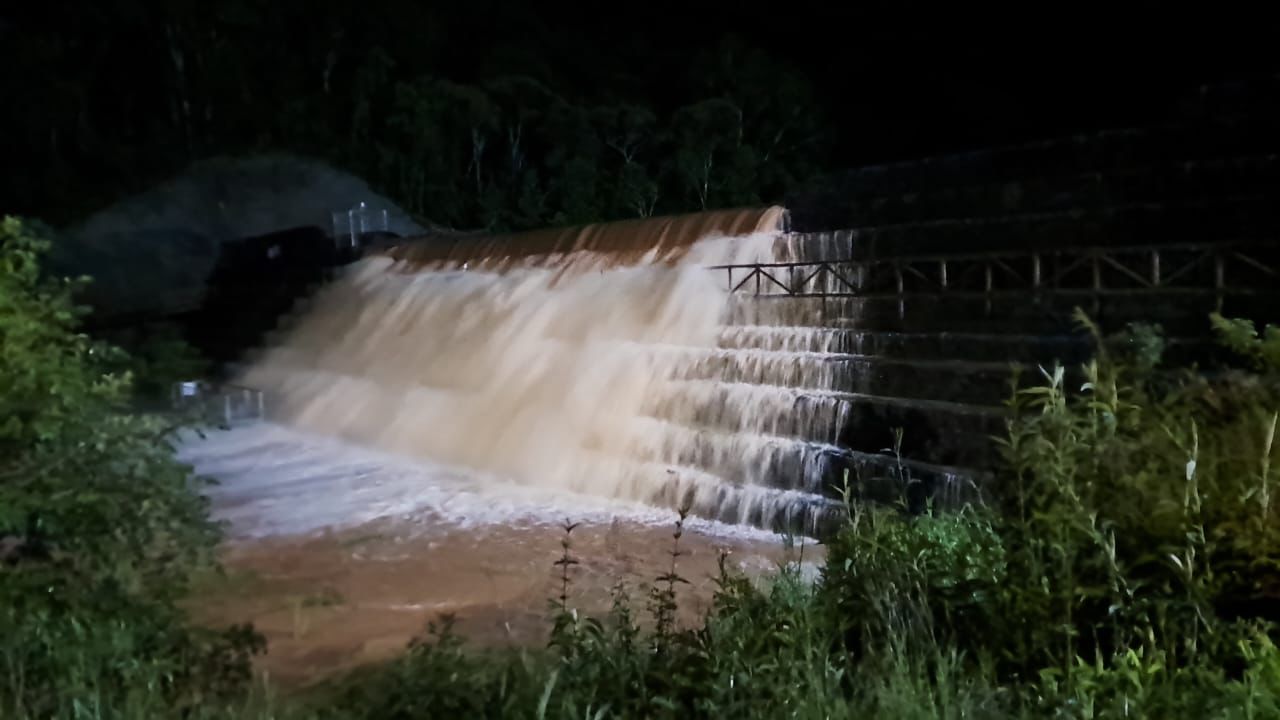 Mesmo com a Defesa Civil em alerta durante todo o dia e com o controle da vazão da barragem de contenção instalada no Parque de Exposições, não foi possível evitar que o Rio dos Queimados transbordasse em alguns pontos da área central. Em determinados momentos, a barragem chegou a extravasar.
