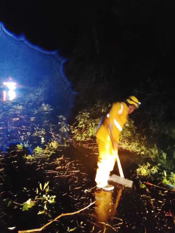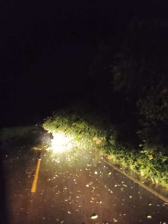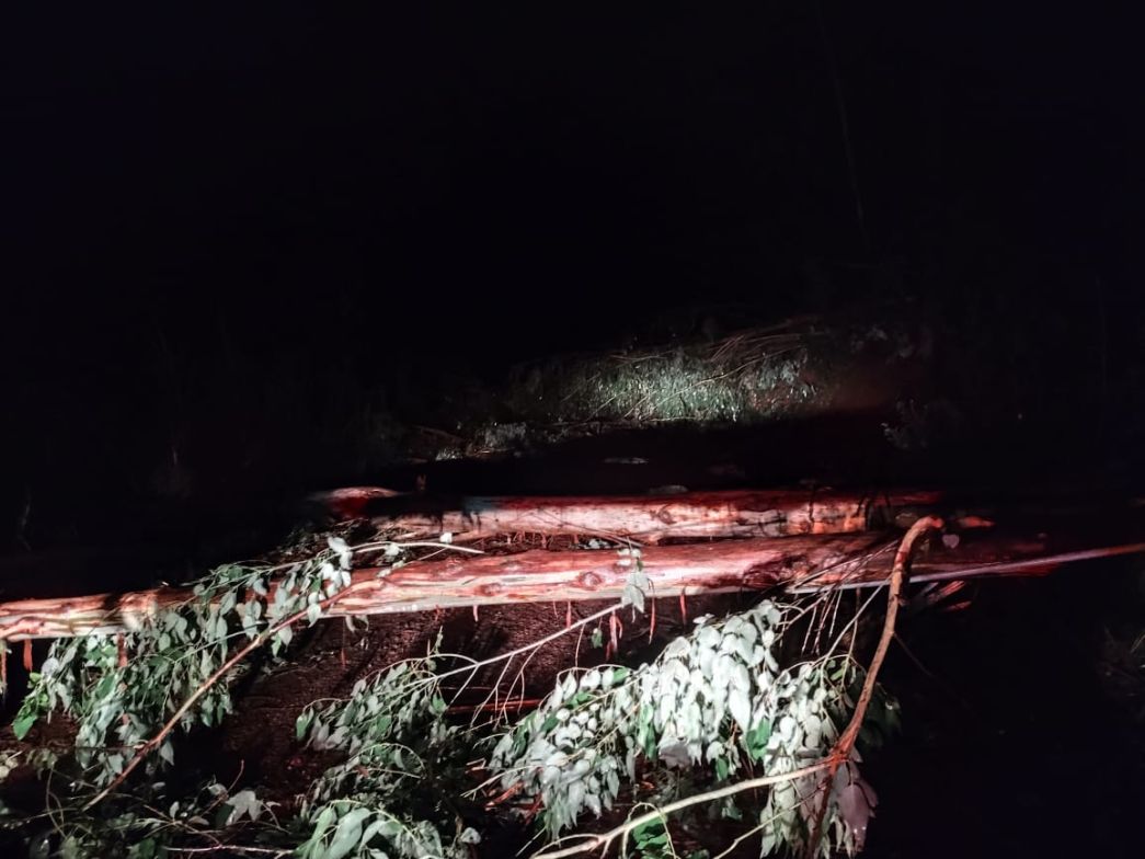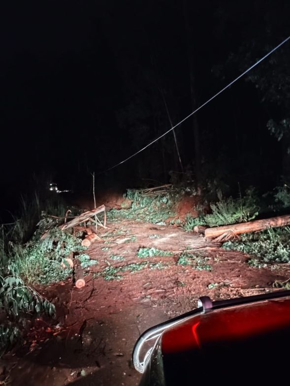 Já por volta das 2h da madrugada, a guarnição de Xaxim foi acionada para uma ocorrência no trajeto entre Xaxim e Arvoredo, onde foram encontradas seis árvores caídas sobre a via e sobre a rede elétrica, situação que provocou a queda de um poste de distribuição de energia.