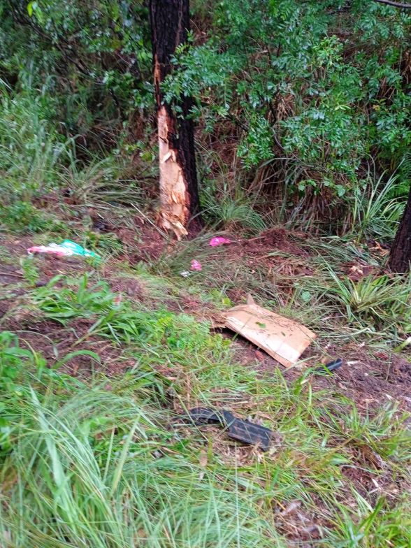 O chamado foi registrado por volta das 11h54. No local, as guarnições confirmaram uma saída de pista seguida de choque em árvore envolvendo uma caminhonete Toyota Hilux, com placas Mercosul.