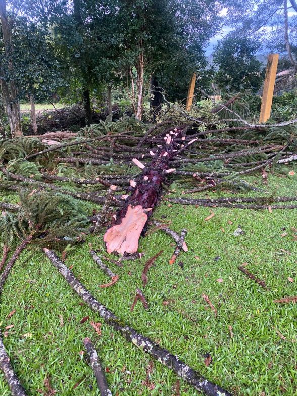 Além disso, uma via pública foi interditada preventivamente após a queda de árvores.