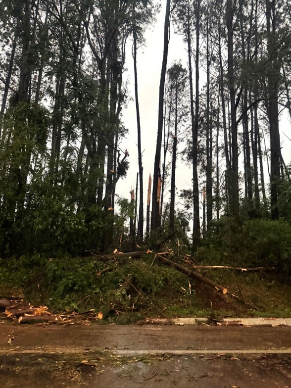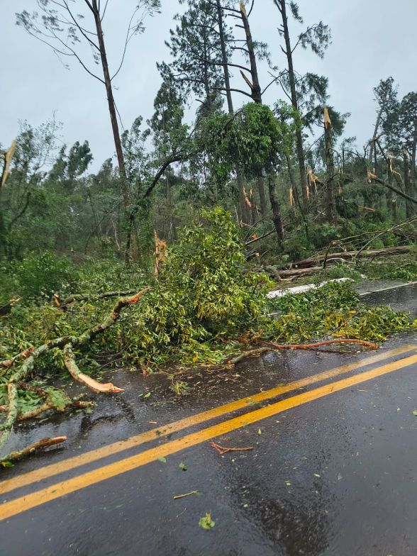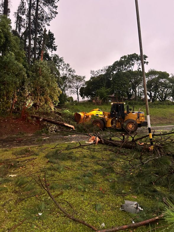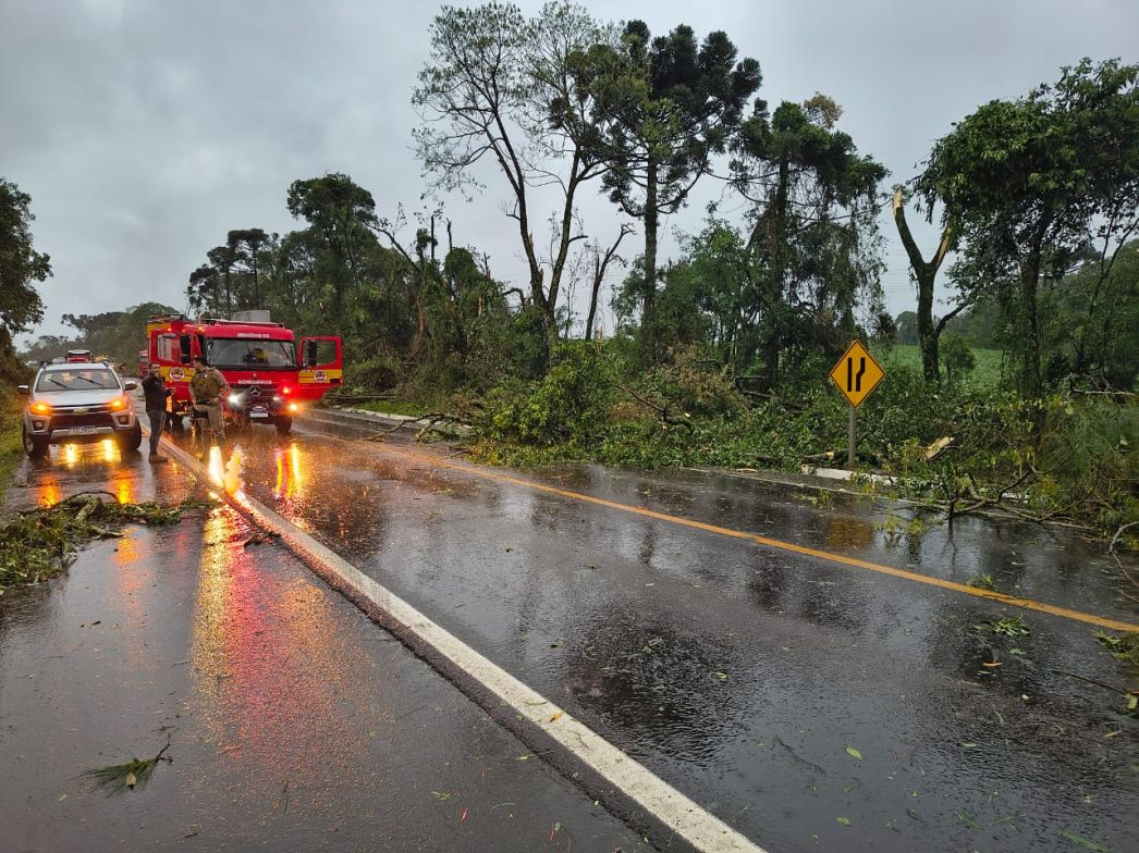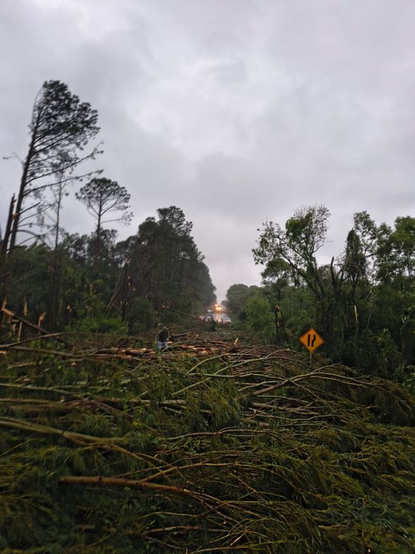 De acordo com o relatório do CBMSC, aproximadamente 300 metros da via ficaram bloqueados por árvores de grande porte;