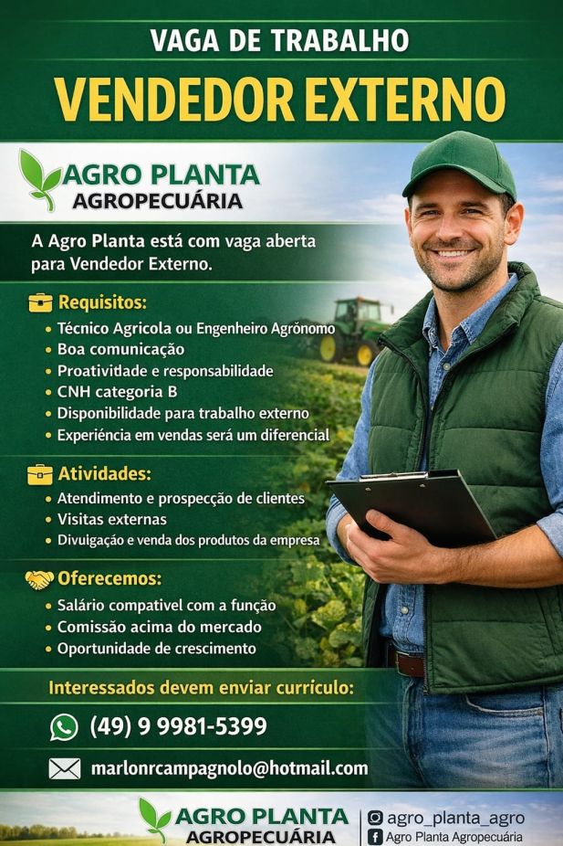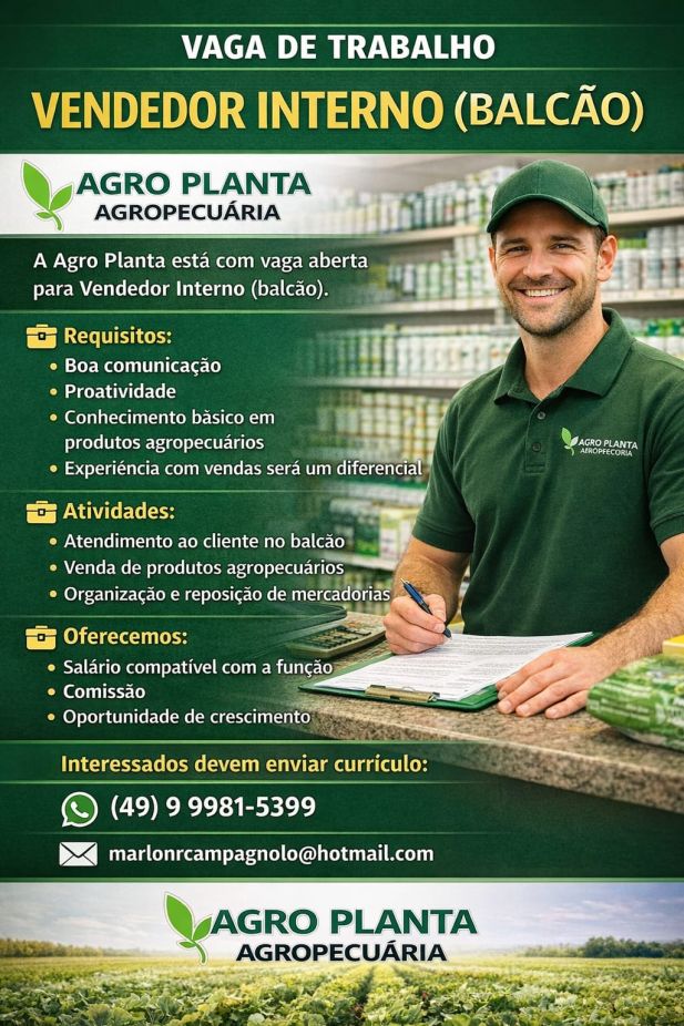Agro Planta Agropecuária tem vagas disponíveis para vendedor