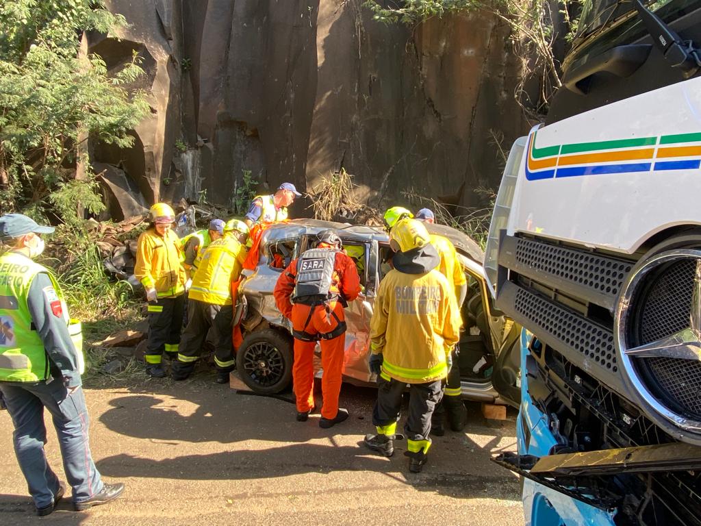 Colisão foi entre carro e caminhão na tarde desta terça-feira (25)