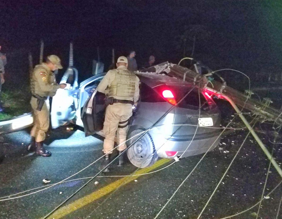 Motorista embriagado colide em poste e foge, abandonando os dois filhos pequenos dentro do carro em SC