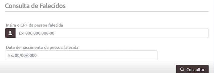 Passo 4 - Informações do beneficiário: agora, estando logado no sistema, você precisará fornecer o CPF e a data de nascimento da pessoa falecida.